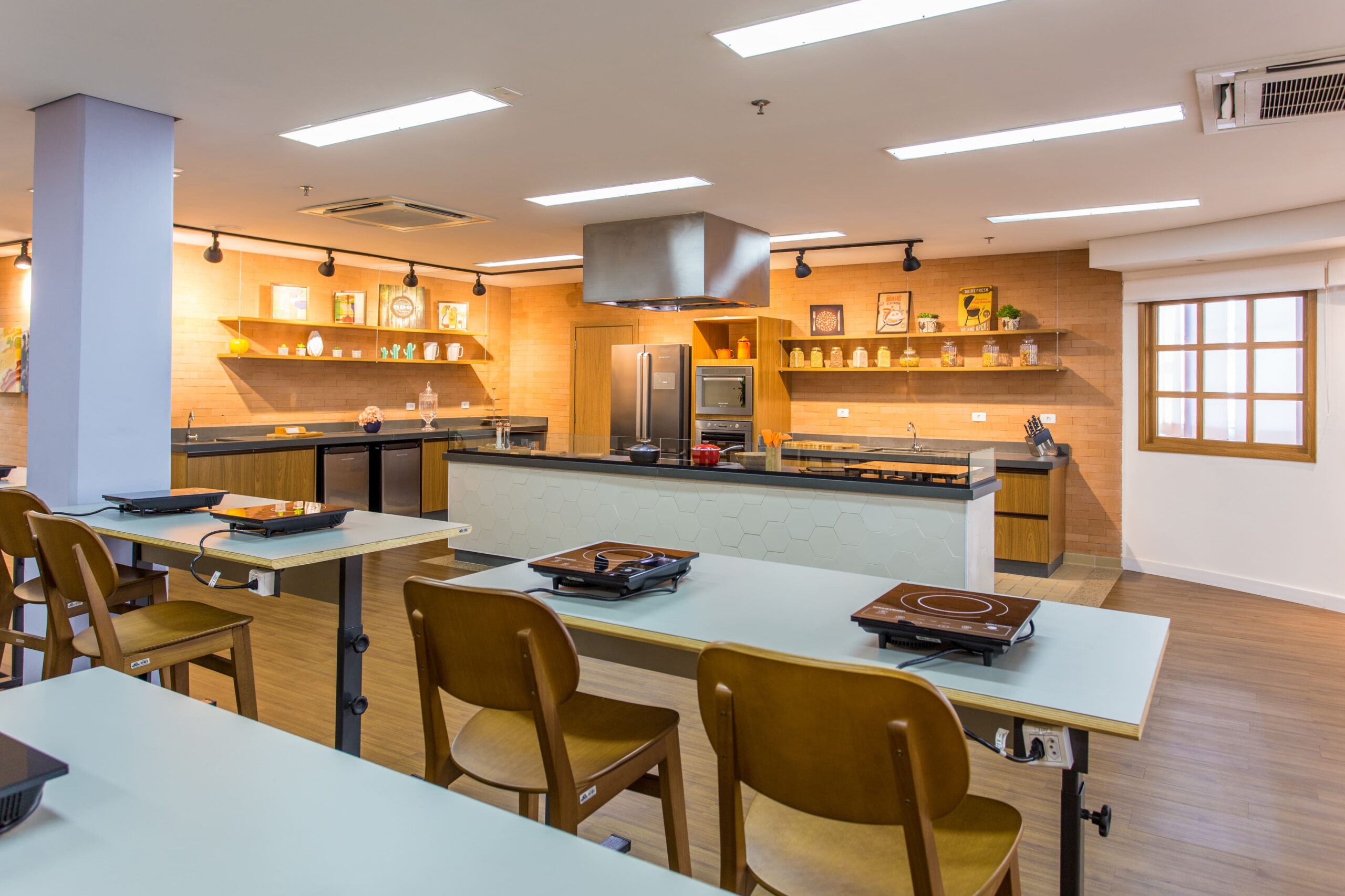 A cozinha cenográfica da Nossa Casa é um ambiente lindo e aconchegante daqueles que não dá vontade de sair. O espaço está preparado para produção de conteúdos sejam fotos ou vídeos e conta com a estrutura necessária para as preparações culinárias. O espaço também possui estrutura multiuso para realização de treinamentos e aulas show.